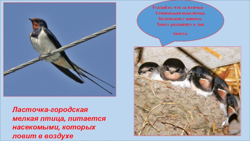 Ласточка-городская мелкая птица, питается насекомыми, которых ловит в воздухе