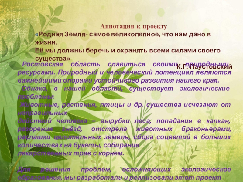Ростовская область славиться своими природными ресурсами. Природный и человеческий потенциал являются важнейшими опорами устойчивого развития нашего края.