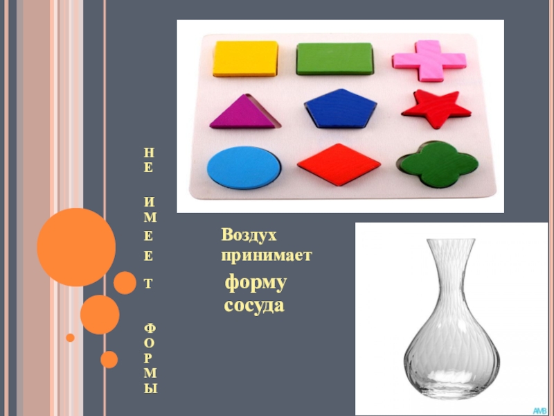 БесцветенПрозраченНе имеет запахаПри нагревании расширяетсяПри охлаждении сжимаетсяНе имеет формы
