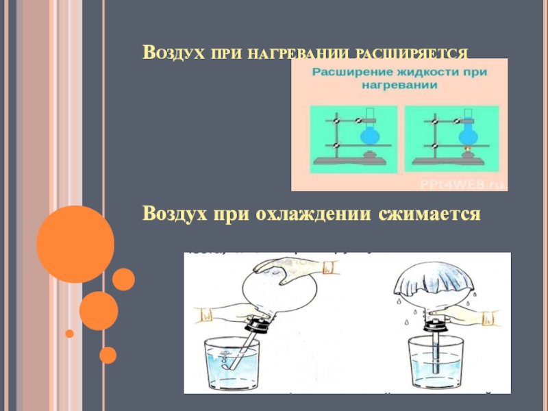 Воздух при нагревании расширяется     Воздух при охлаждении сжимается