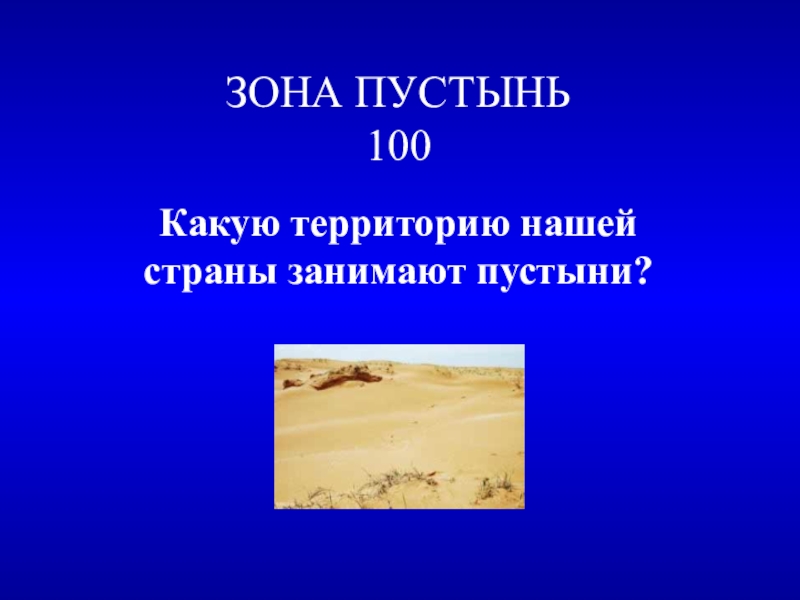 ЗОНА ПУСТЫНЬ 100Какую территорию нашей страны занимают пустыни?