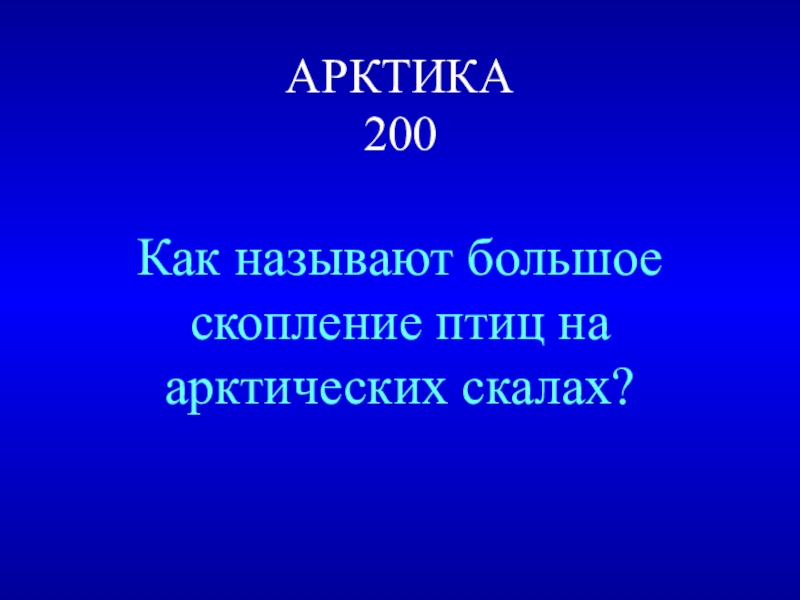 АРКТИКА 200Как называют большое скопление птиц на арктических скалах?