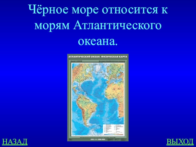 НАЗАДВЫХОДЧёрное море относится к морям Атлантического океана.
