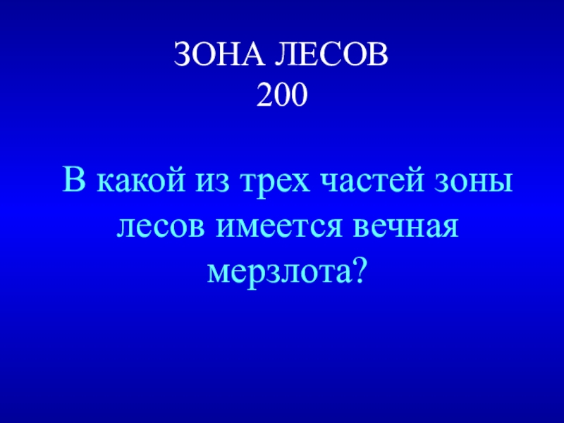 ЗОНА ЛЕСОВ 200В какой из трех частей зоны лесов имеется вечная мерзлота?