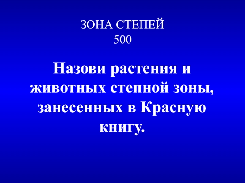 ЗОНА СТЕПЕЙ 500Назови растения и животных степной зоны, занесенных в Красную книгу.