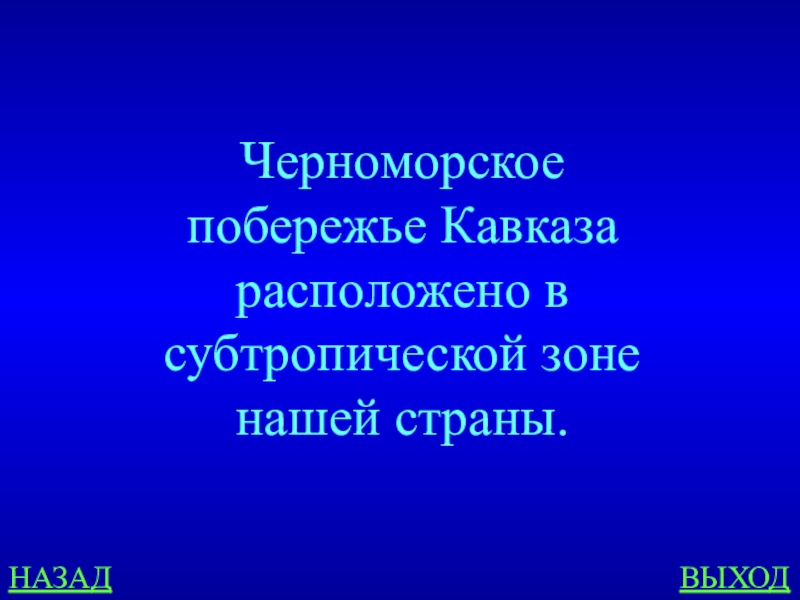 НАЗАДВЫХОДЧерноморское побережье Кавказа расположено в субтропической зоне нашей страны.