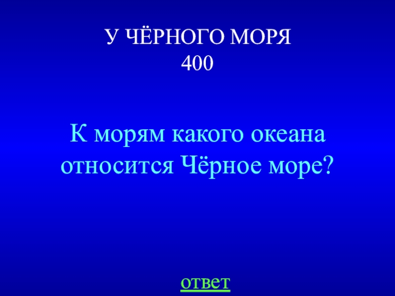 У ЧЁРНОГО МОРЯ 400 ответК морям какого океана относится Чёрное море?