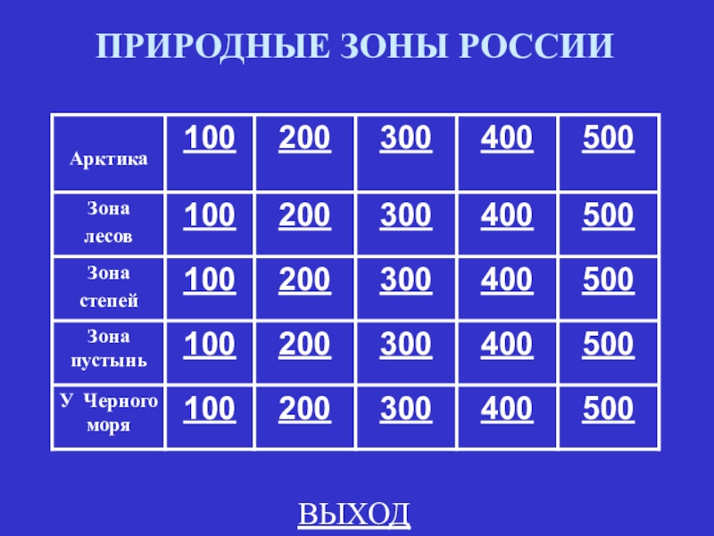 СВОЯ ИГРА© Грунина Елена Сергеевна, 2013по окружающему миру для 4 класса по теме :«Природные зоны России»