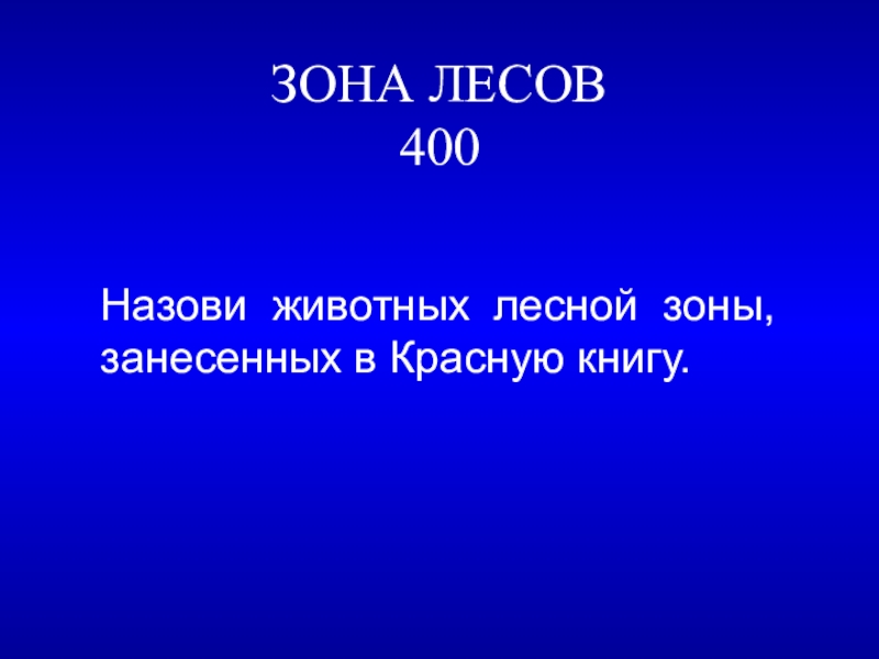 ЗОНА ЛЕСОВ 400Назови животных лесной зоны, занесенных в Красную книгу.