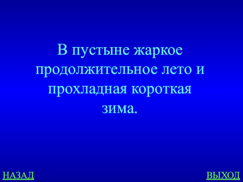 НАЗАДВЫХОДВ пустыне жаркое продолжительное лето и прохладная короткая зима.