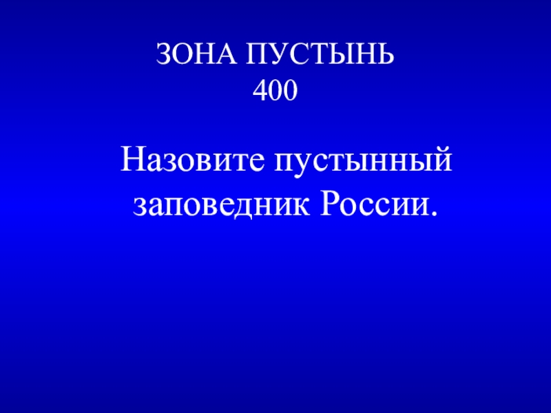 ЗОНА ПУСТЫНЬ 400Назовите пустынный заповедник России.