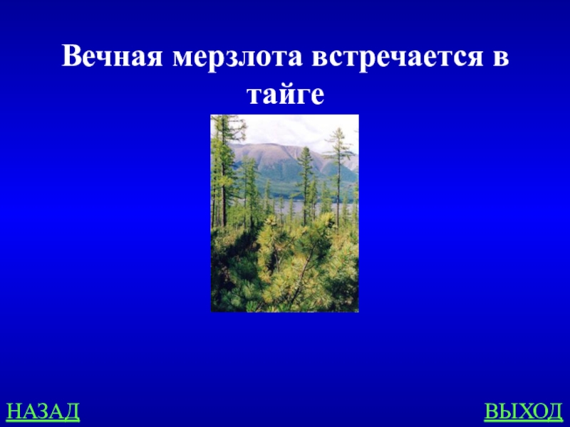 НАЗАДВЫХОДВечная мерзлота встречается в тайге