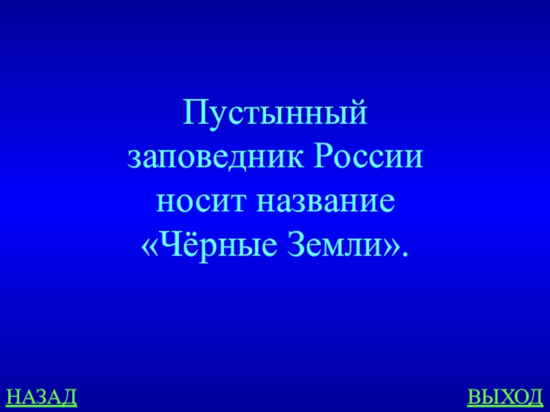 НАЗАДВЫХОДПустынный заповедник России носит название «Чёрные Земли».