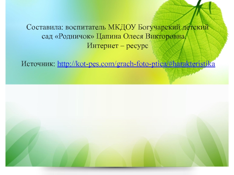 Слайд 13Составила: воспитатель МКДОУ Богучарский детский сад «Родничок» Цапина Олеся Викторовна.