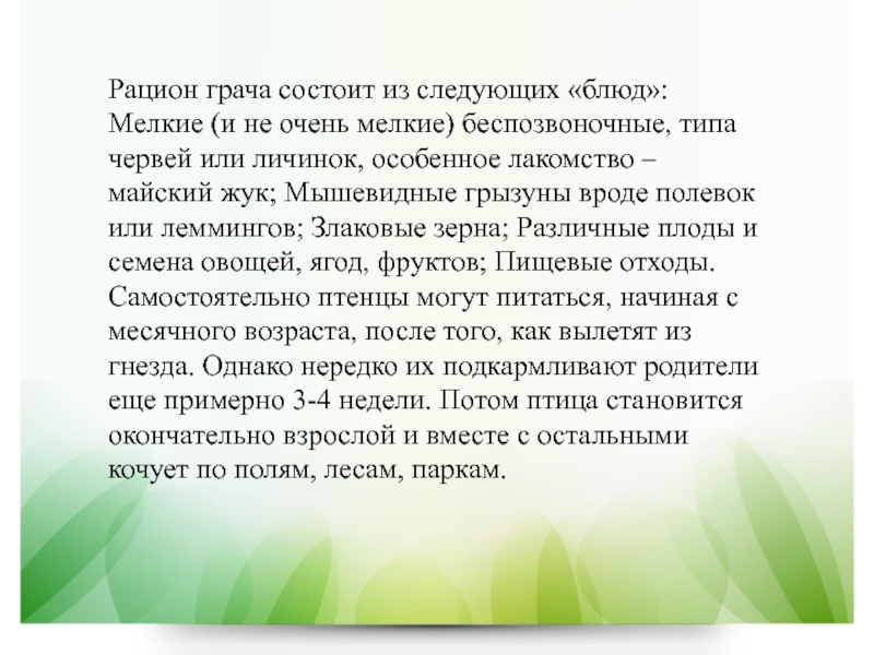 Слайд 6Рацион грача состоит из следующих «блюд»: Мелкие (и не очень мелкие)