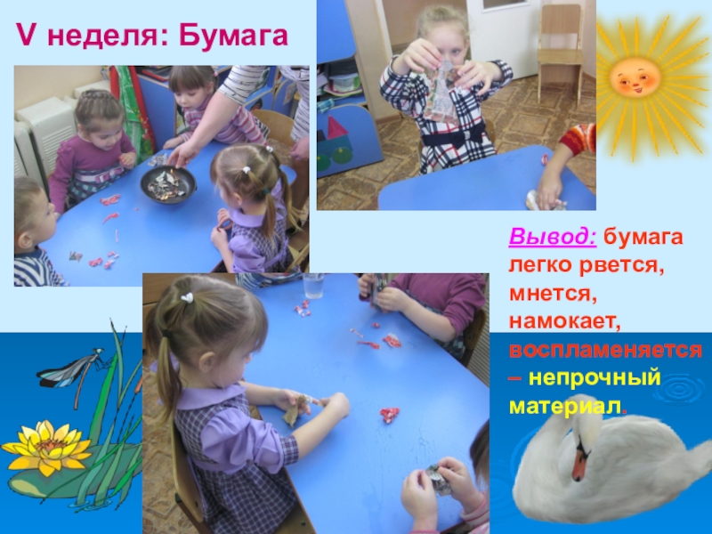 Вывод: бумага легко рвется, мнется, намокает, воспламеняется – непрочный