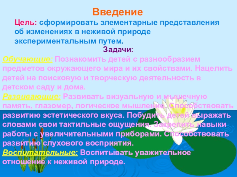 Цель: сформировать элементарные представления об изменениях в неживой природе экспериментальным путем.