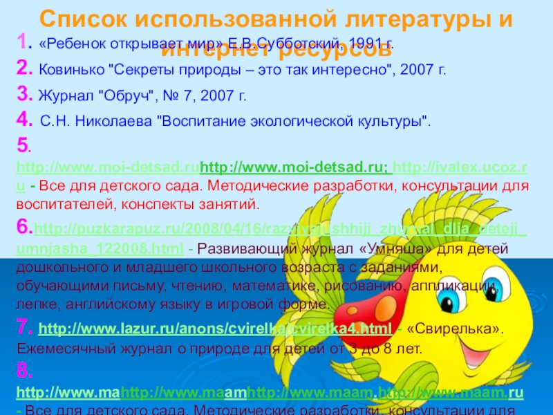 8. http://www.mahttp://www.maamhttp://www.maam.http://www.maam.ru - Все для детского сада. Методические разработки, консультации для воспитателей, конспекты занятий.
