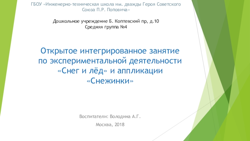 Открытое интегрированное занятие по экспериментальной деятельности «Снег и лёд» и аппликации «Снежинки»
