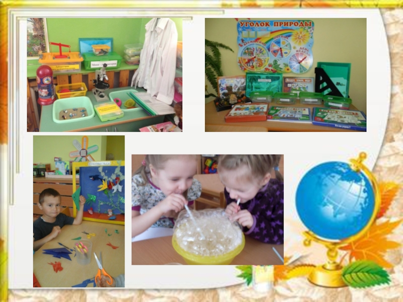 В старшем дошкольном возрасте - это центр науки и природы, в котором используются приборы и оборудование – весы, микроскоп, лупы, пипетки, рулетка и др.; различные емкости; материалы – природный, бросовый, технический (болты, гайки); литература – энциклопедии, журналы, иллюстрации; игры.