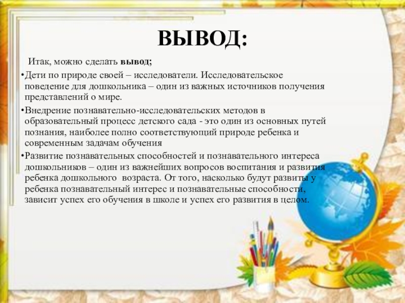 Внедрение познавательно-исследовательских методов в образовательный процесс детского сада - это один из основных путей познания, наиболее полно соответствующий природе ребенка и современным задачам обучения