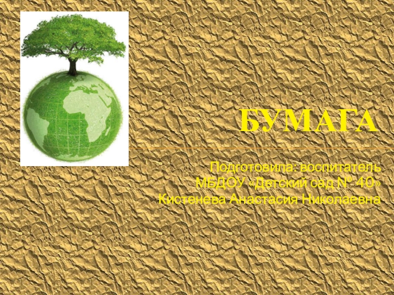 Подготовила: воспитатель МБДОУ «Детский сад № 40»Кистенева Анастасия НиколаевнаБумага