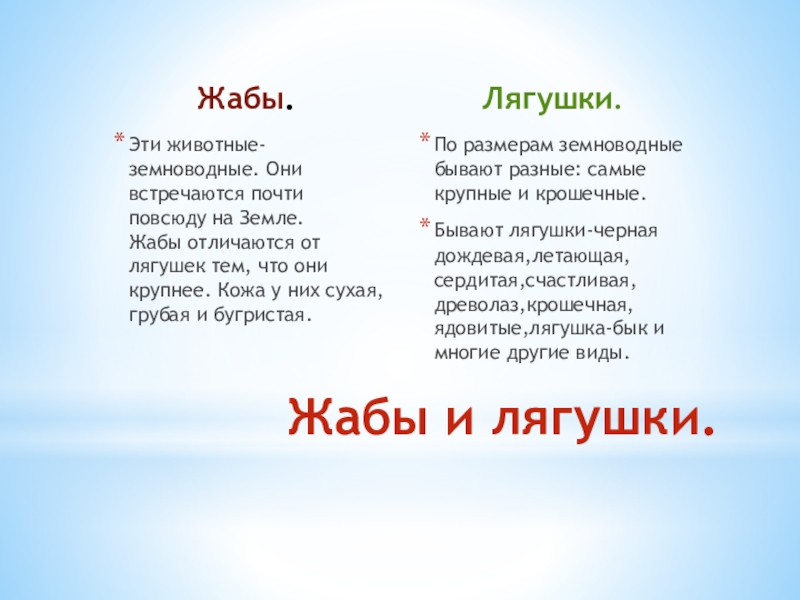 Жабы и лягушки.