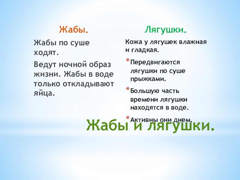 Кожа у лягушек влажная и гладкая.