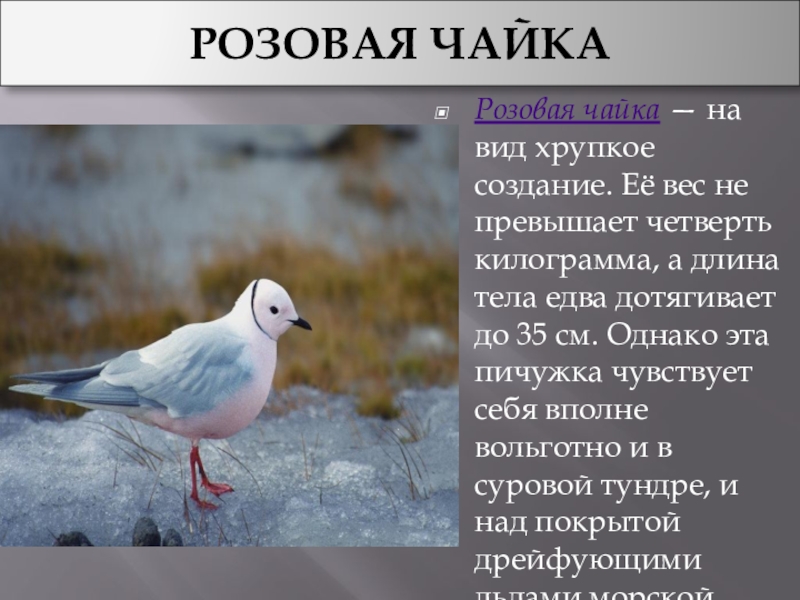 Слайд 21РОЗОВАЯ ЧАЙКА