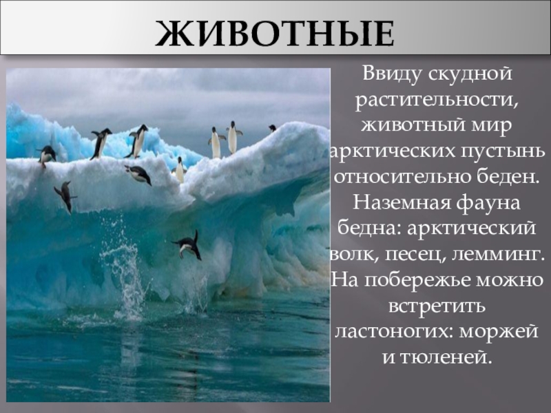 Ввиду скудной растительности, животный мир арктических пустынь относительно беден. Наземная фауна