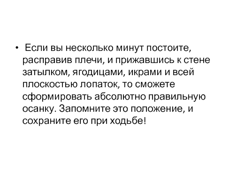 Слайд 12 Если вы несколько минут постоите, расправив плечи, и прижавшись к