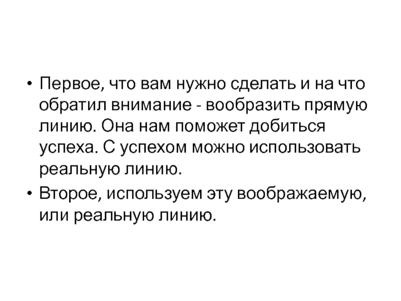 вообразить прямую линию. Она нам поможет добиться успеха. С успехом можно использовать реальную линию.