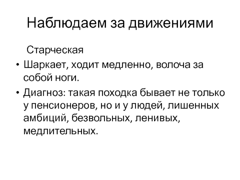 такая походка бывает не только у пенсионеров, но и у людей, лишенных амбиций, безвольных, ленивых, медлительных.