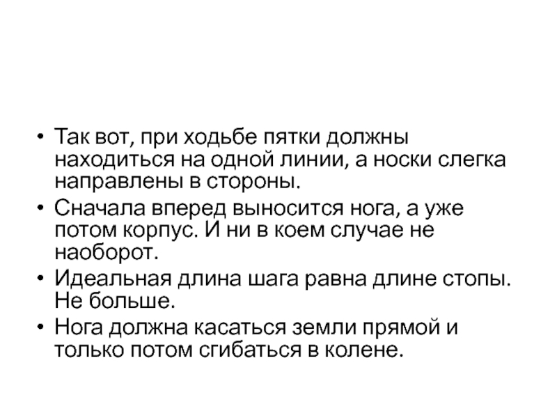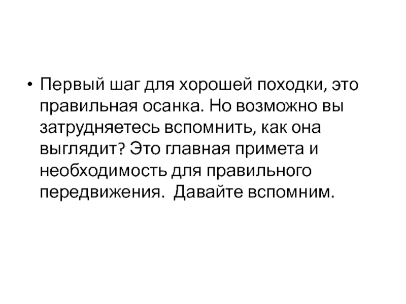 Слайд 8Первый шаг для хорошей походки, это правильная осанка. Но возможно вы