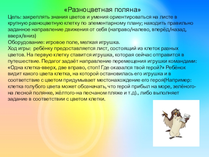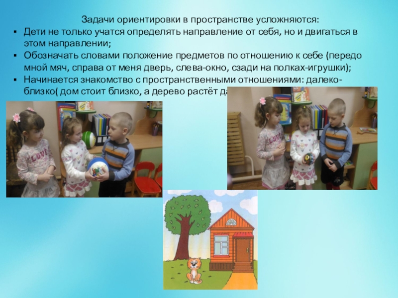 Цель: совершенствовать умения ориентироваться в пространстве.