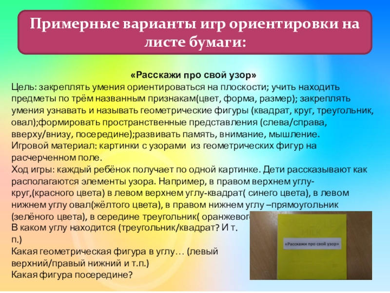 УМЕНИЕ ОРИЕНТИРОВАТЬСЯ В ПРОСТРАНСТВЕ – НЕОБХОДИМЫЙ ЭЛЕМЕНТ ПОДГОТОВКИ РЕБЕНКА К ШКОЛЬНОМУ ОБУЧЕНИЮ