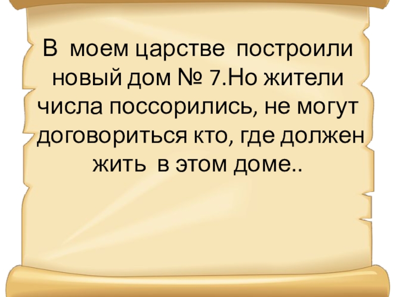 Слайд 4В моем царстве построили новый дом № 7.Но жители числа поссорились,
