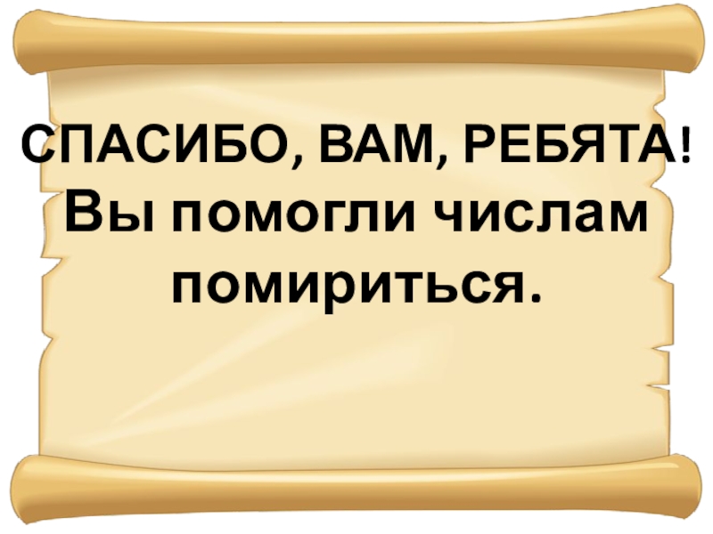 Слайд 6СПАСИБО, ВАМ, РЕБЯТА! Вы помогли числам помириться.