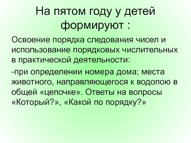 Цель: показать детям значение порядкового счета и познакомить с его механизмом.