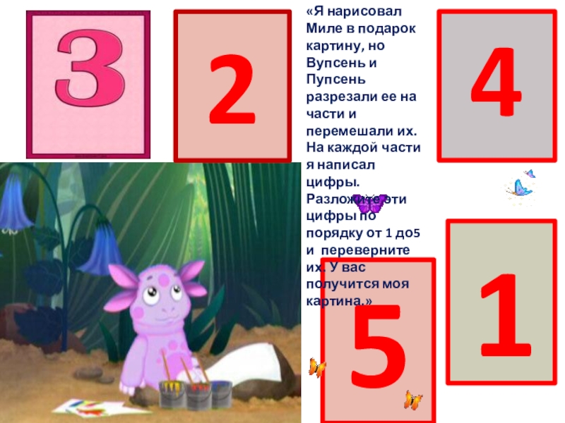 5412«Я нарисовал Миле в подарок картину, но Вупсень и Пупсень разрезали ее на части и перемешали их.