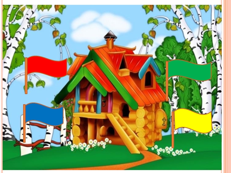 Слайд 16Решила лисичка украсить теремок разноцветными флажками