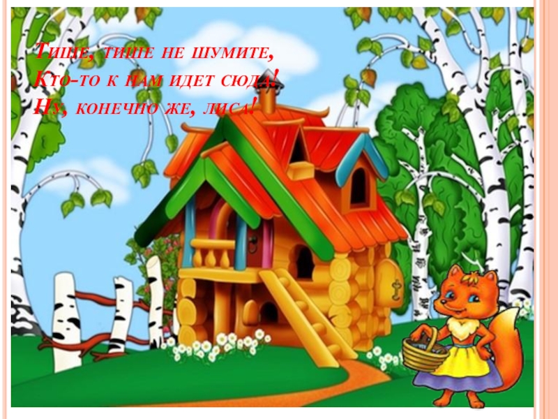 Тише, тише не шумите,  Кто-то к нам идет сюда!  Ну, конечно же, лиса!