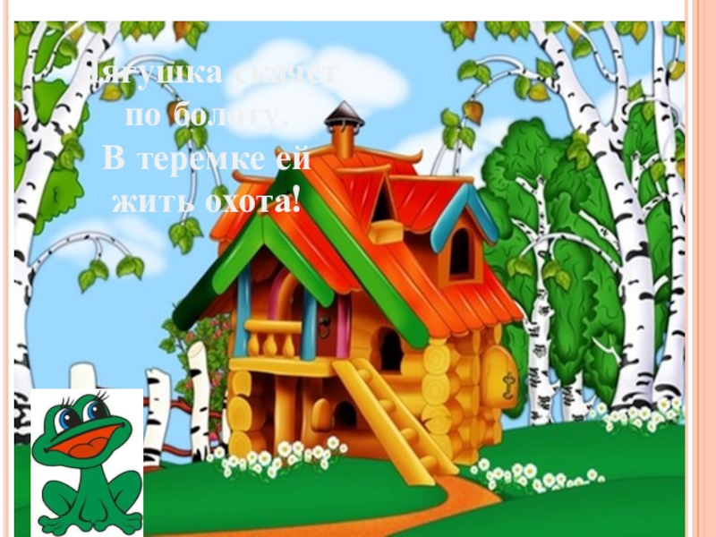 Лягушка скачет по болоту.В теремке ей жить охота!