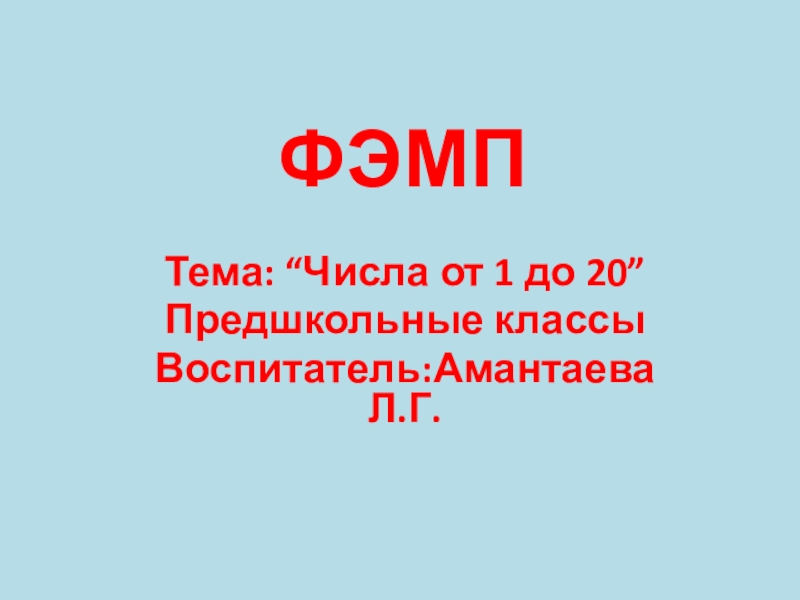 ФЭМПТема: “Числа от 1 до 20”Предшкольные классыВоспитатель:Амантаева Л.Г.