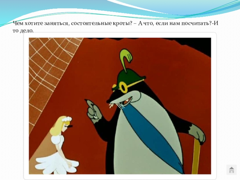 Слайд 17Чем хотите заняться, состоятельные кроты? – А что, если нам посчитать?-И