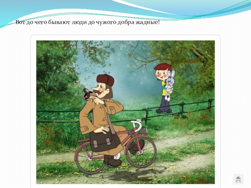 Слайд 18Вот до чего бывают люди до чужого добра жадные!