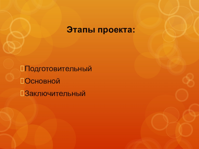 Этапы проекта:Подготовительный ОсновнойЗаключительный