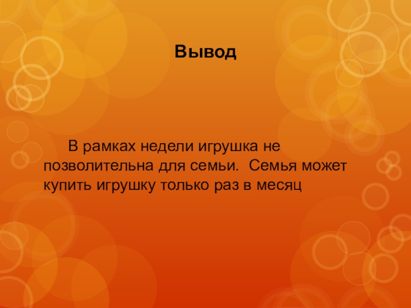 Вывод     В рамках недели игрушка не позволительна для семьи. Семья может купить игрушку