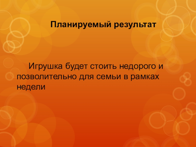 Планируемый результат   Игрушка будет стоить недорого и позволительно для семьи в рамках недели