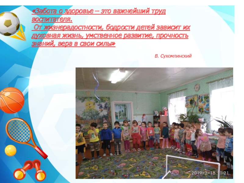 Слайд 2«Забота о здоровье – это важнейший труд воспитателя.
